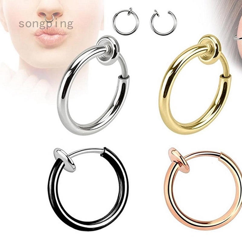 2pcs Retractable Earrings No Need Piercing Hip Hop Style Hoop Earrings Nose Ring Lip Ear Clip Body Shopee Philippines