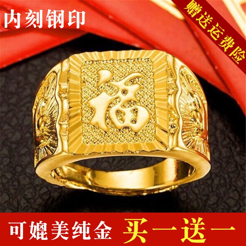 999 Pure Gold Color Fook Word Men S Ring Fortune Simulation
